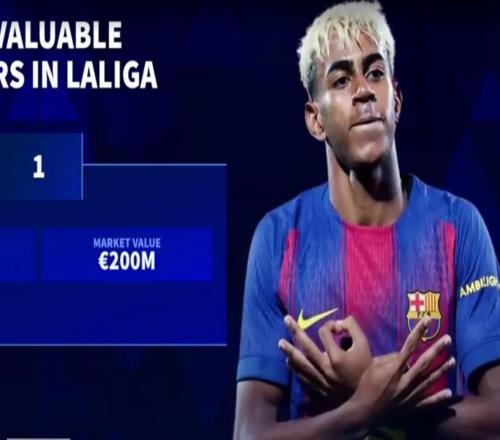 西甲球员最新身价:亚马尔2亿欧居首,,维尼修斯跌至1.5亿欧