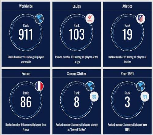 格列兹曼今年34岁,在所有1991年出生的球员中身价排名第三,仅次于范戴克和德布劳内。