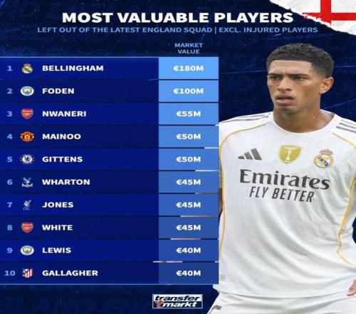 1、贝林厄姆 (皇家马德里)1.8亿欧
