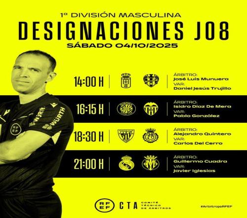 雷速体育10月3报道 西甲官方公布了当地时间10月4日四场西甲联赛的裁判安排,吉列尔莫·夸德拉主哨皇马对阵比利亚雷亚尔的比赛。