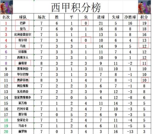 积分榜方面,巴萨1分优势反超皇马登顶,比利亚雷亚尔差皇马2分位列第3,保持不败的升班马埃尔切力压马竞位列第4。赫塔菲今天若是能赢球止住颓势,先赛的情况下能暂时超过马竞,埃尔切挤入前4,但是他们却被逆转绝杀,还是排在第8。逆转赢球的奥萨苏纳升至第11,暂时远离了降级区。