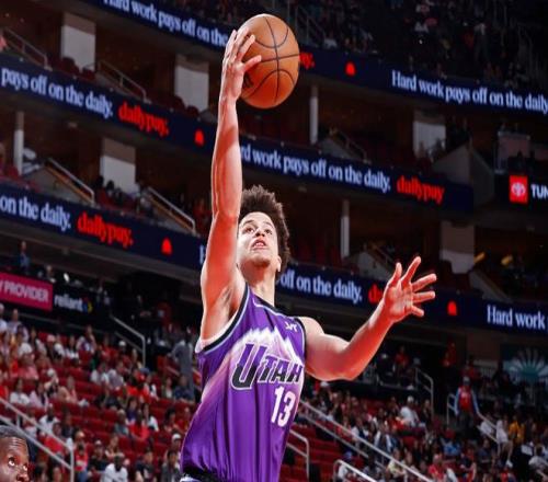 本场比赛中,爵士的替补后场新秀小沃尔特-克莱顿(Walter Clayton Jr.)的表现并不理想。考虑到全场出场20分12秒,投篮10中3,三分线外7中1,得到了7分1篮板3助攻的数据,还有3次失误和3次犯规,正负值为-13。克莱顿虽然出场时间不算太多,但是他也是得到了不少的球权和出手机会。结果克莱顿的手感一塌糊涂,进攻效率非常糟糕,完全没有展现出自己的得分能力和投射能力。不仅如此,他还出现了多次失误,而且他在组织和串联方面的才能同样没有发挥出来。克莱顿在防守端的表现也是很不理想的水平,也同样没有为球队提供这方面的支持。最关键的是,克莱顿的打法看起来非常自私,在场上过于粘球,这也让大家对于他的比赛阅读能力感到有些担心。总体来看,克莱顿在本场比赛中的表现可以说是惨不忍睹,与大家对他的预期存在着巨大的差距。