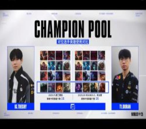 电竞体育10月14报道 今日S15世界赛入围赛iG对阵T1的比赛即将开始,在赛前官方放出了双方上单英雄池对比,TheShy与Doran第三赛段均使用了十六名英雄,其中只有四名英雄不相同。