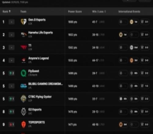 电竞体育10月24报道 拳头官网更新全球战队实力排名: